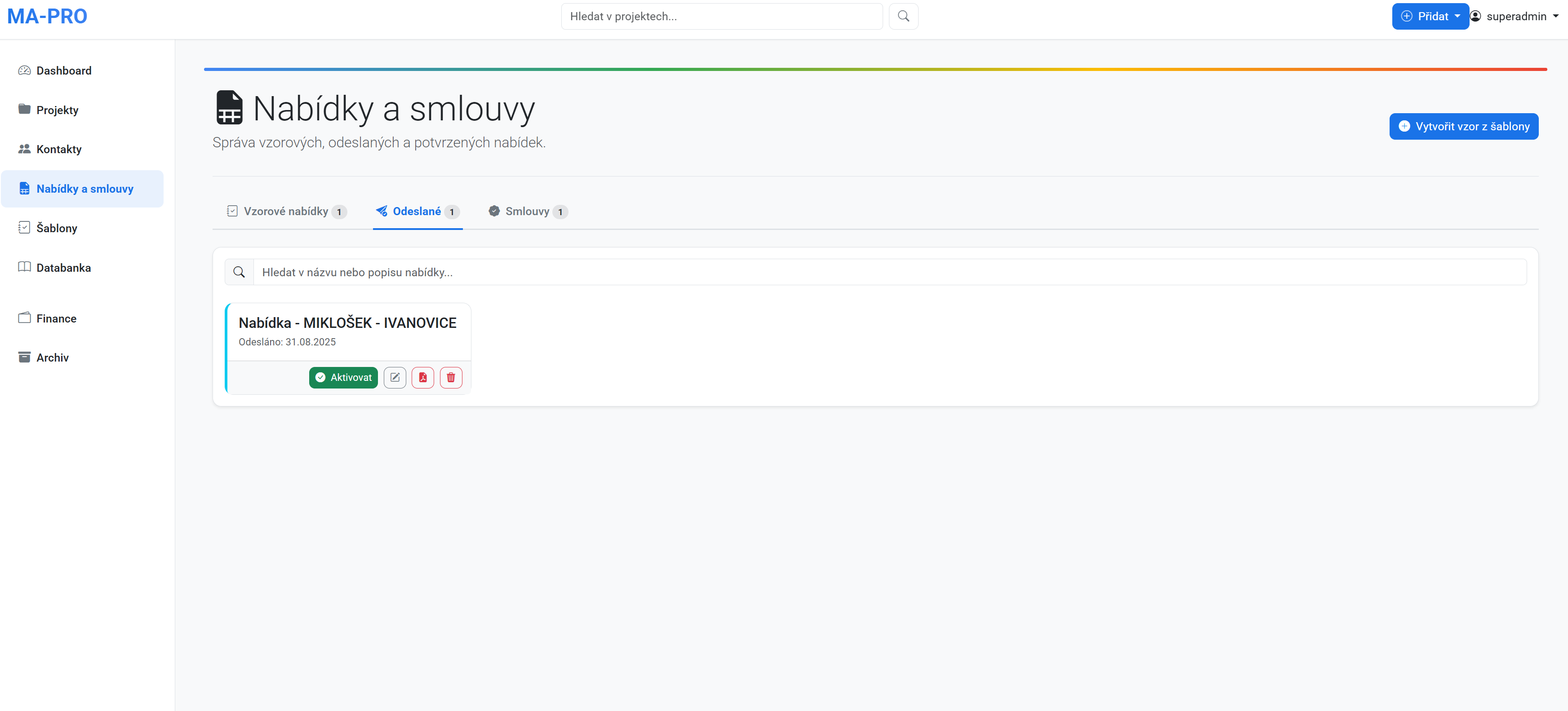 „MA-PRO vnímáme jako klíčový nástroj pro zefektivnění naší práce. Díky automatizovaným funkcím, jako jsou Databanka a Kontakty, jsme eliminovali opakované zadávání informací. Vytvořené šablony nám umožňují rychle zakládat nové projekty a zkrátit dobu jejich přípravy.“